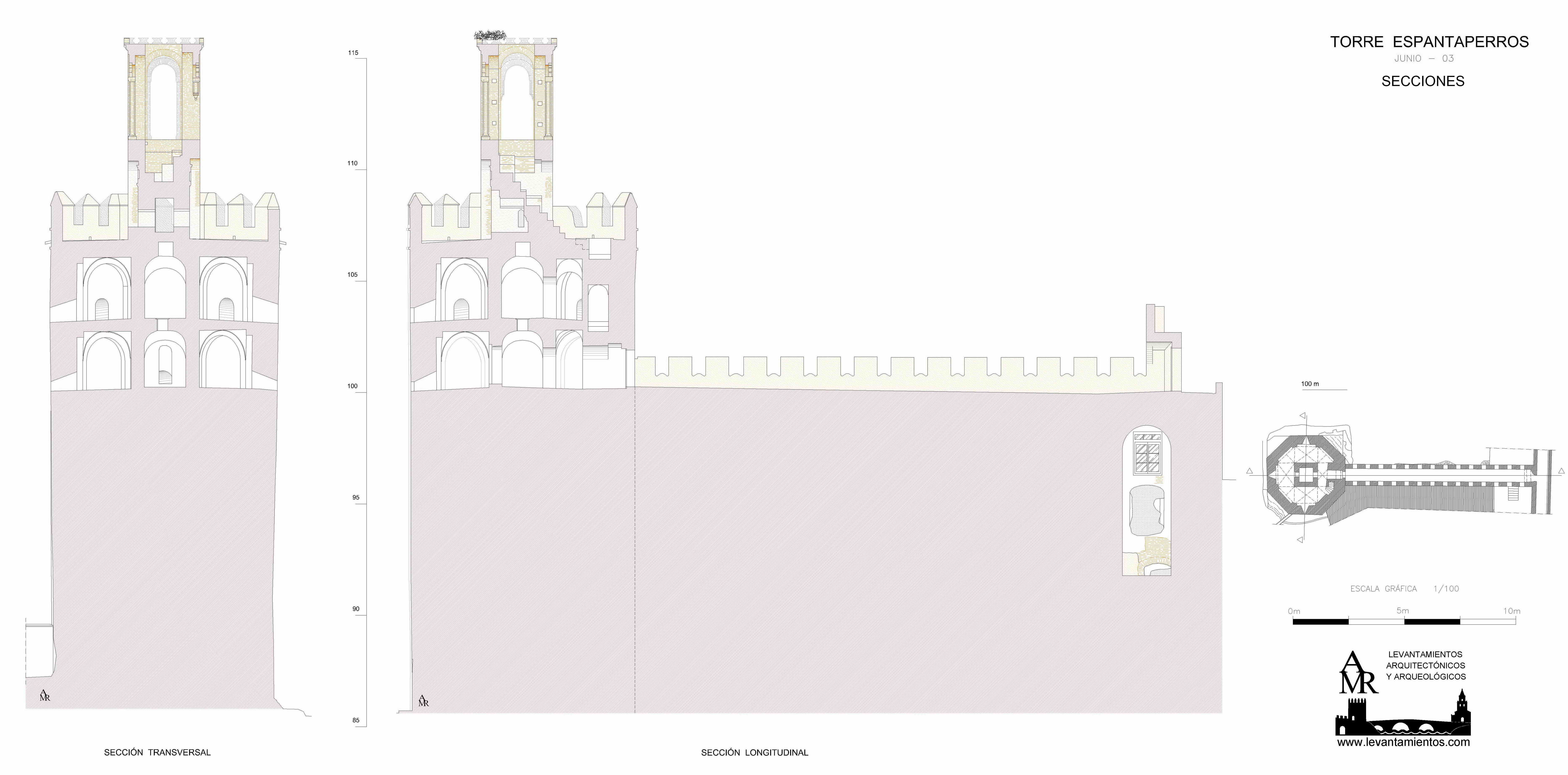 Torre albarrana de la Alcazaba de Badajoz de planta octogonal. Origen Almohade siglo XII.