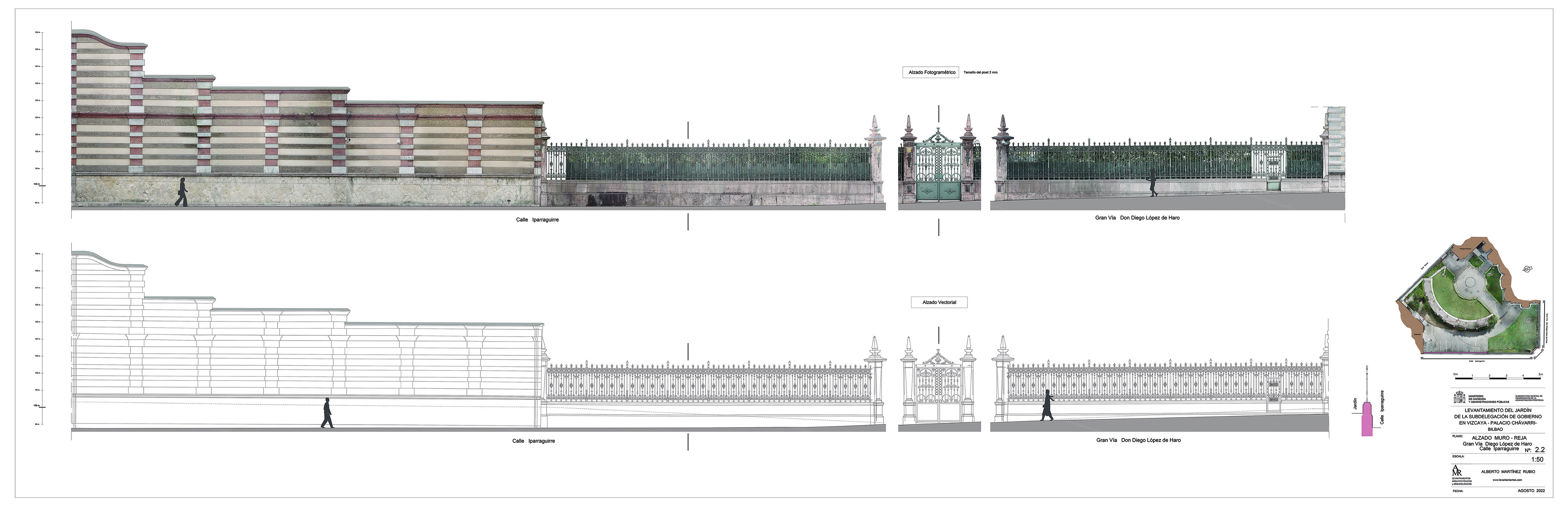 Jardín histórico del palacio de Chávarri, de principios del siglo XX. Levantamiento Agosto 2022.