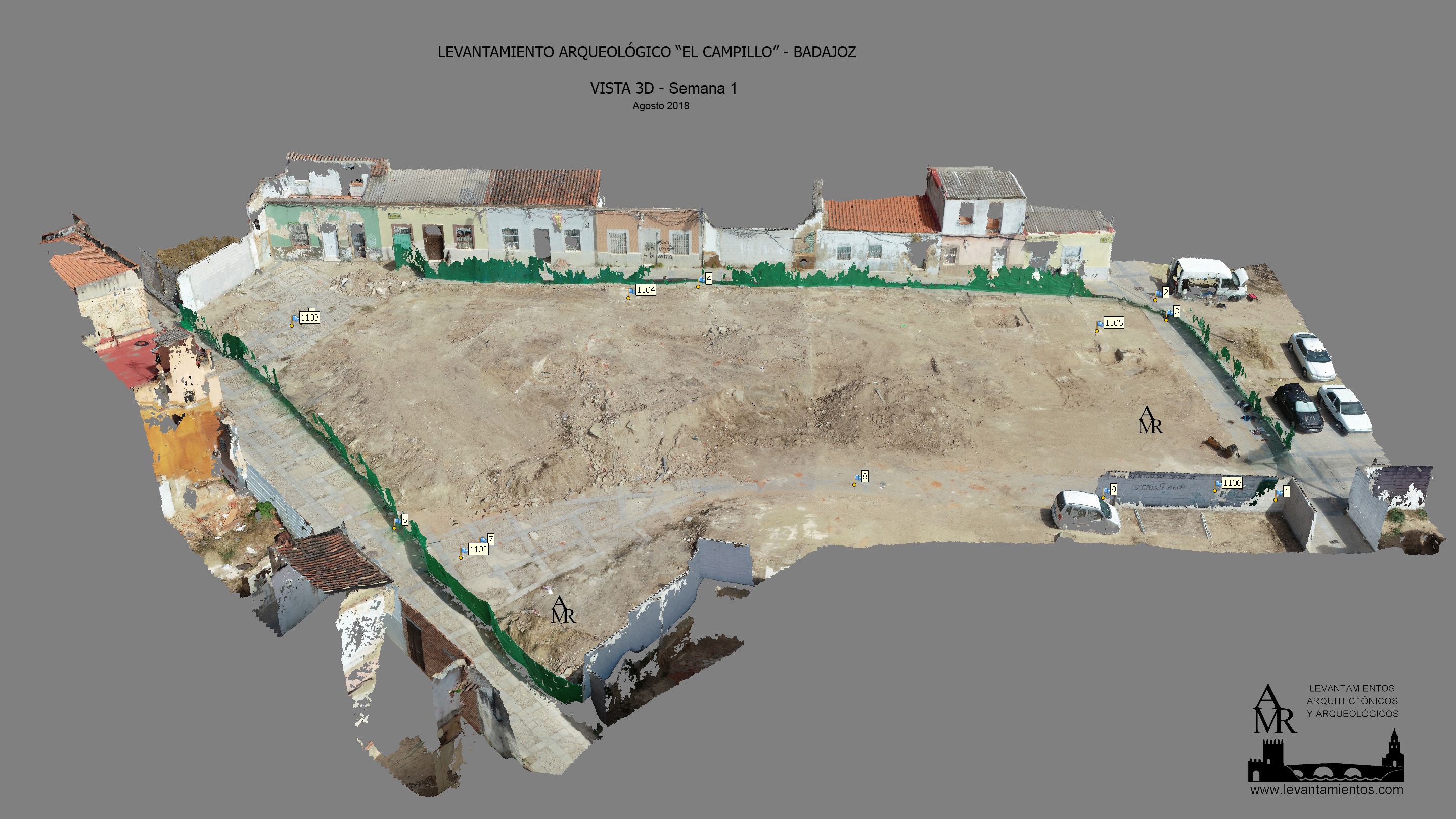 Archaeological survey made every two weeks in august 2018 of the remains that appeared on the plot excavated in the neighborhood of Campillo in Badajoz.
