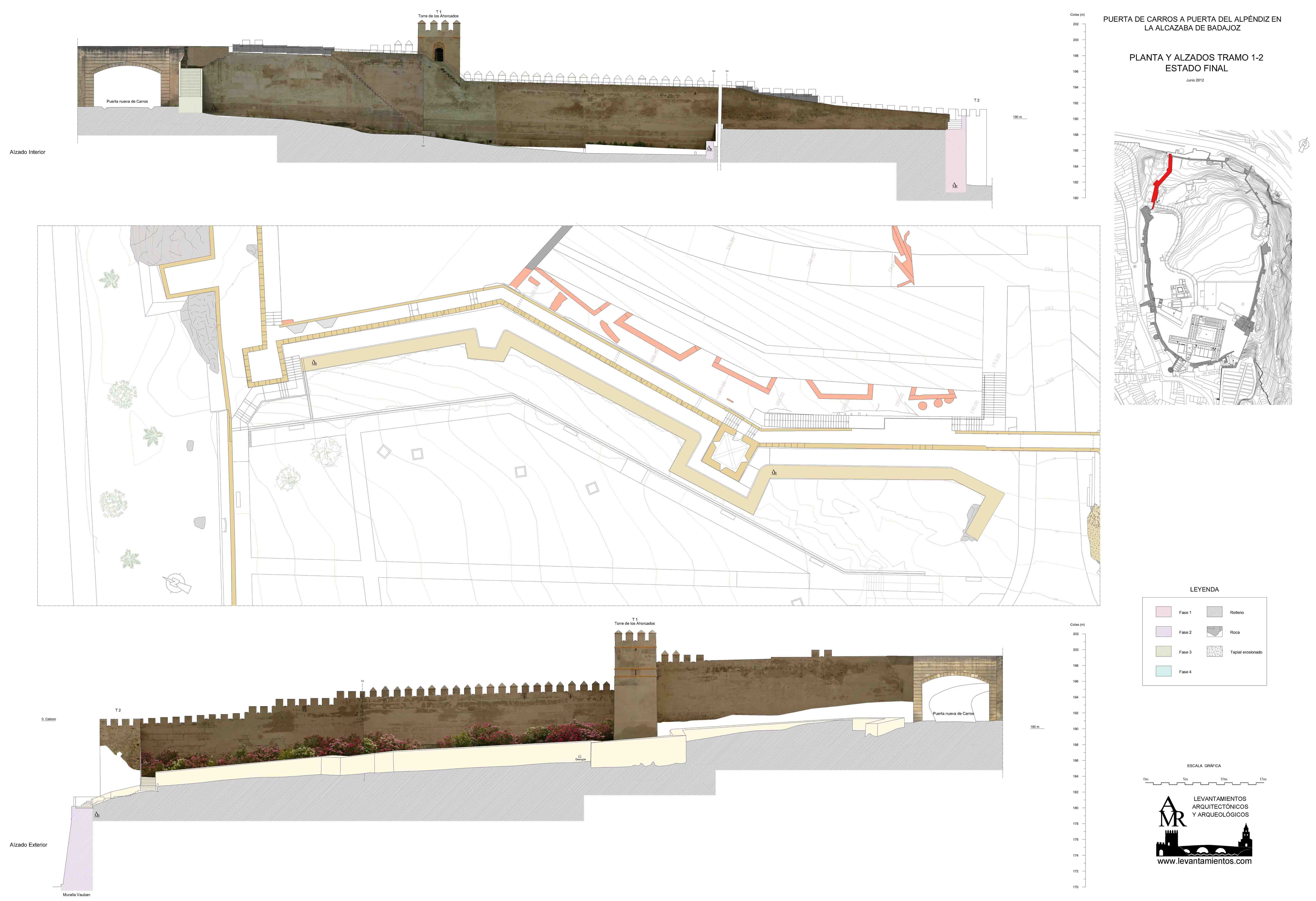Se realizaron tres levantamientos de la muralla. El estado previo a la intervención, el resultado arqueológico y el del final de obra.