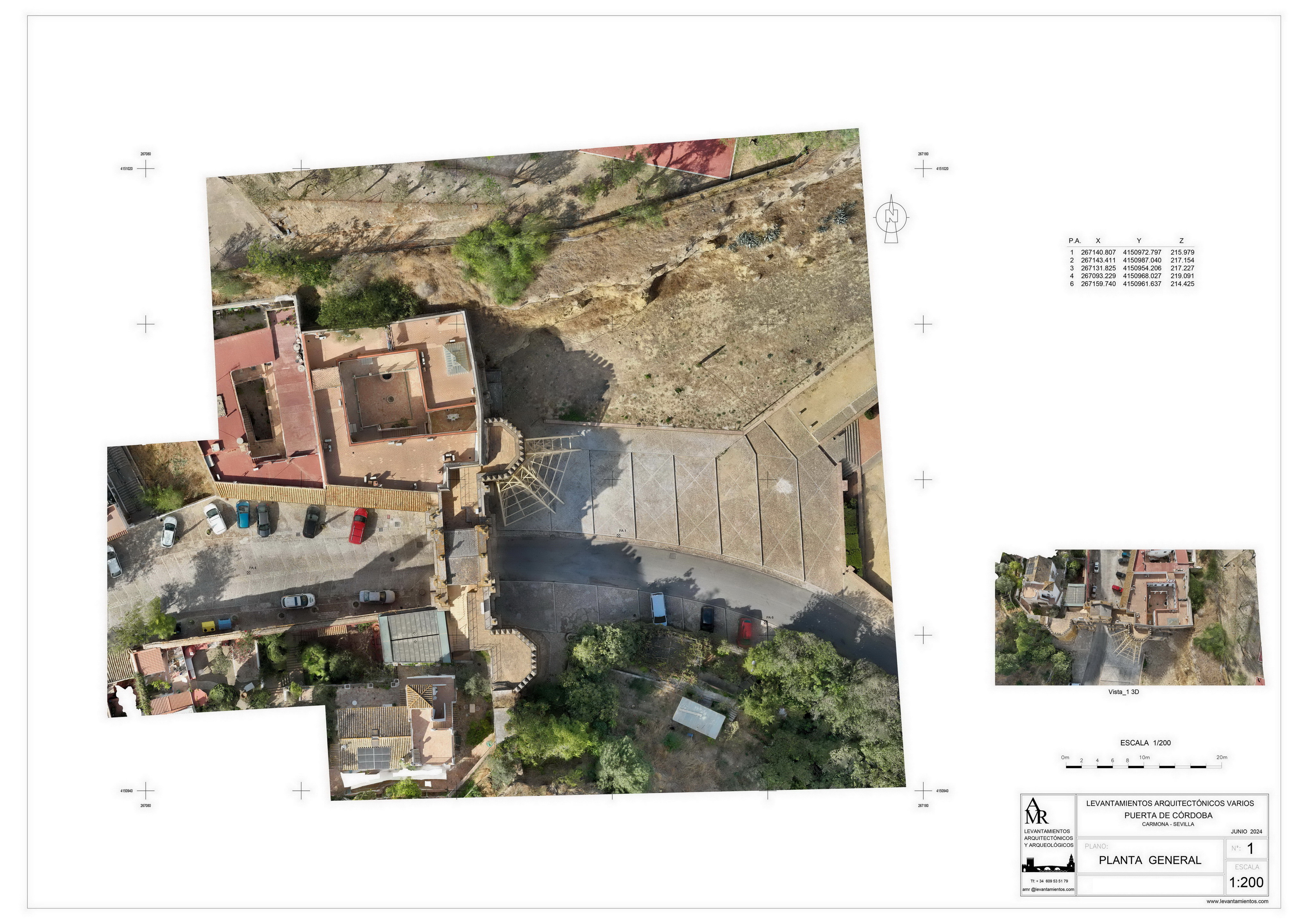 Levantamiento realizado por topografía, fotogrametría (terrestre-aérea), escáner láser y GPS en Junio 2024.