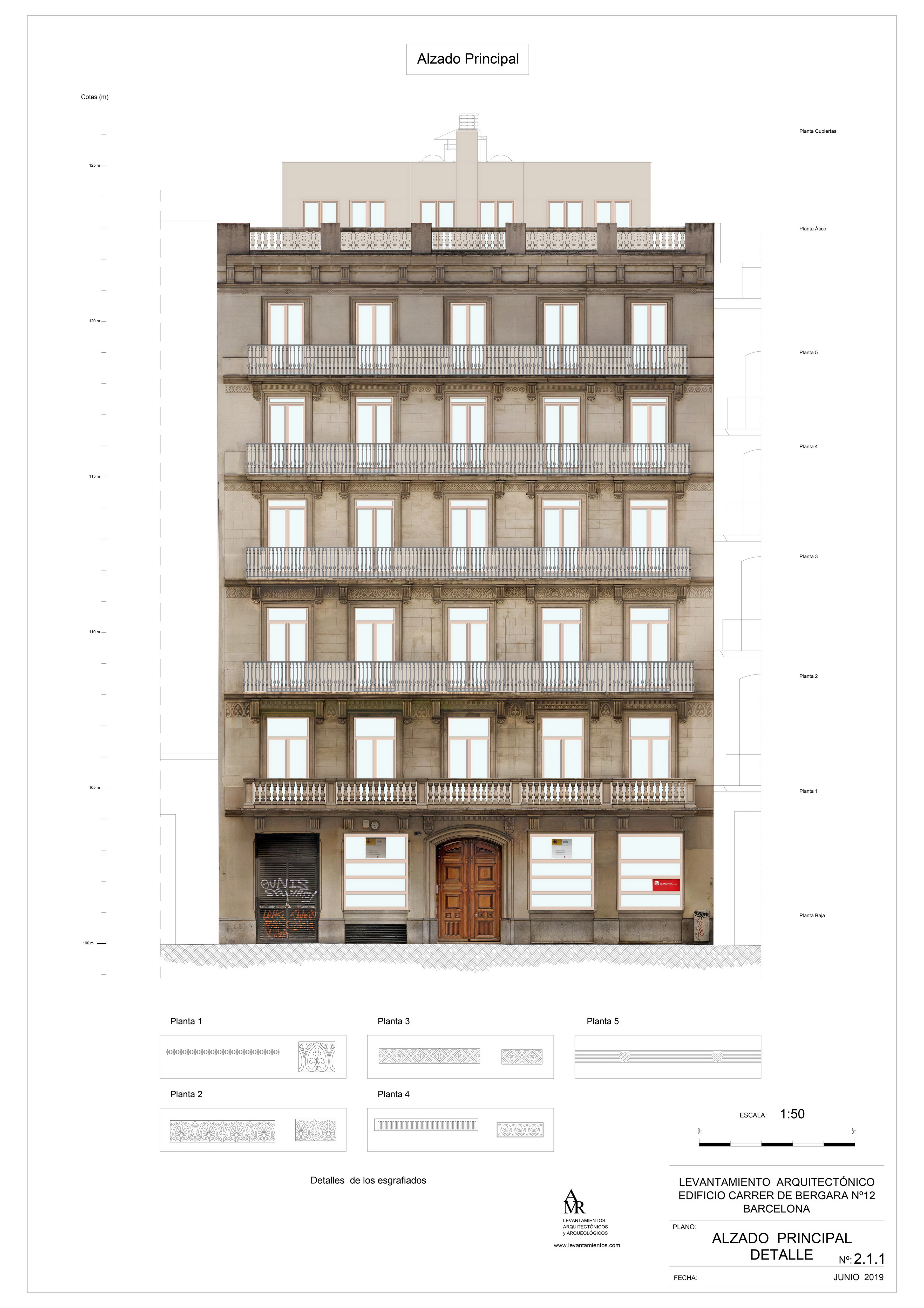 Levantamiento realizado por topografía y fotogrametría rectificada. Junio 2019.