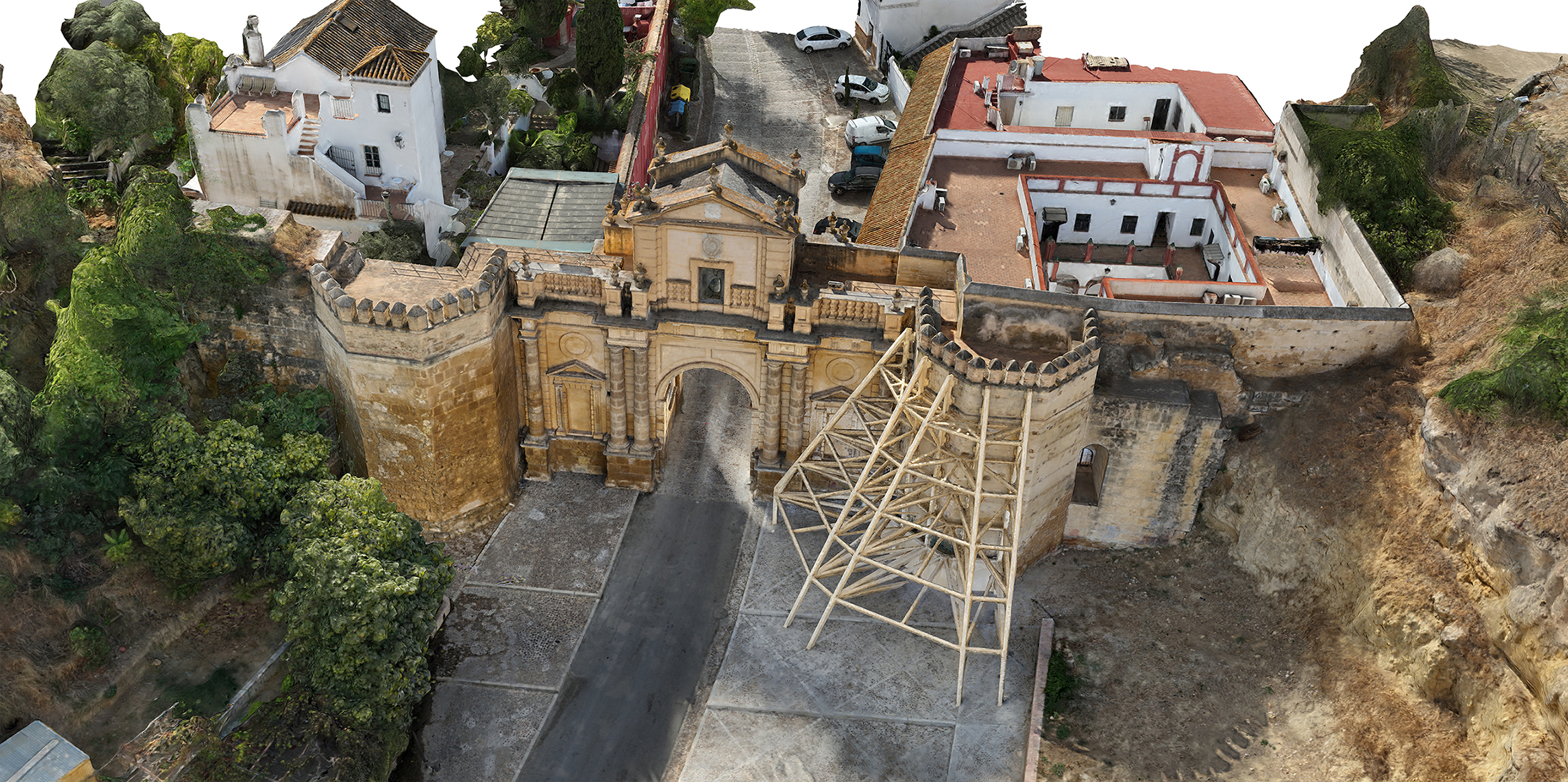 Levantamiento realizado por topografía, fotogrametría (terrestre-aérea), escáner láser y GPS en Junio 2024.